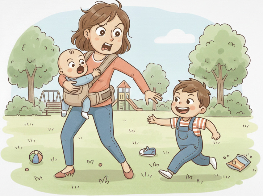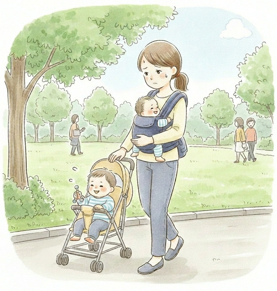 • 0歳の子を抱っこ紐に入れたまま、3歳の子を公園で追いかける