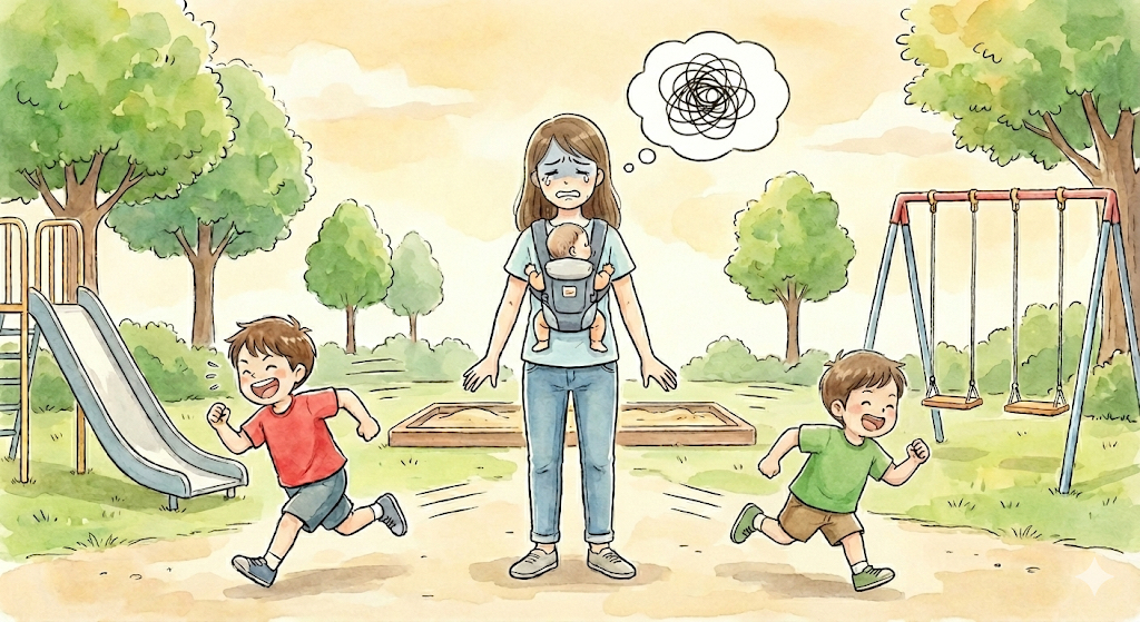 子ども3人と公園に着いた途端、上の子2人が別々の方向に走り出しちゃった。