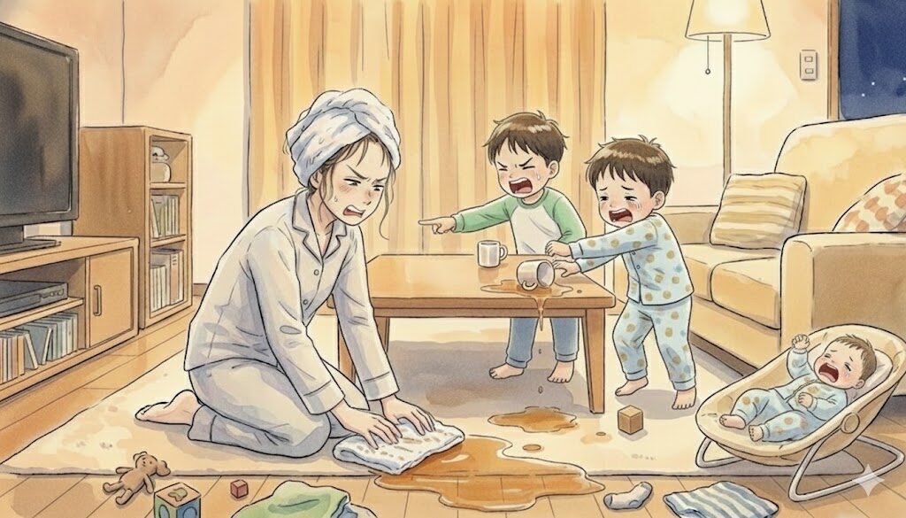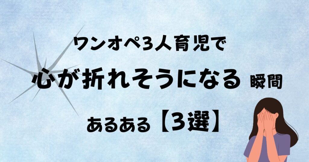 最初に、ワンオペ3人育児で心が折れそうになる、あるあるな瞬間を3つ紹介しました。