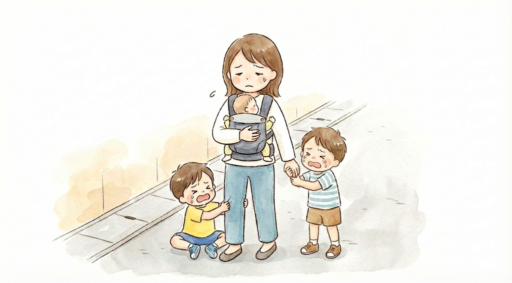 末っ子を抱っこ紐で抱えて、上の子2人と手を繋いで歩いていたら、