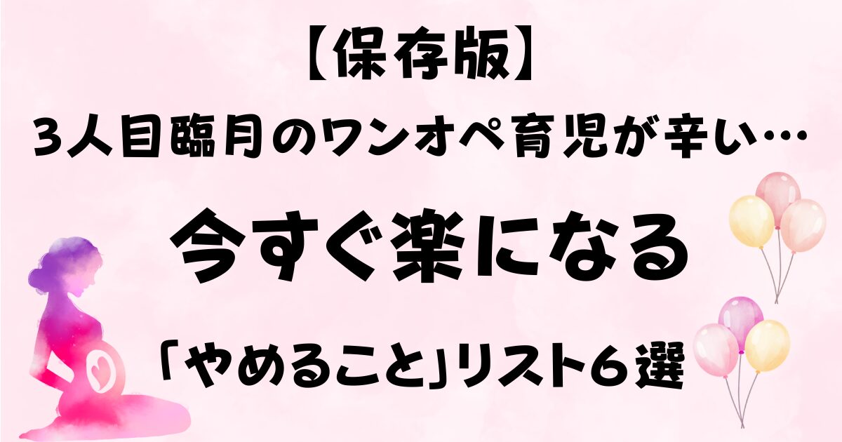 3人目臨月のワンオペ育児が楽になるやめることリストを6つ紹介します。