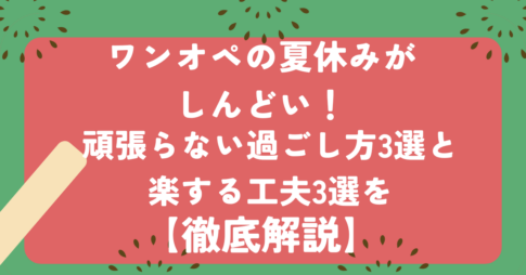 つらいときの乗り越え方子どもたちとワンオペで夏休みを過ごすなんてしんどすぎる! 他の人たちって、ワンオペでも素敵な夏休みをすごしてるのかな? 夏休みが怖いって感じる。どうやって過ごせばいいの…? この記事では、こんな悩みに答えて、夏休みがしん...