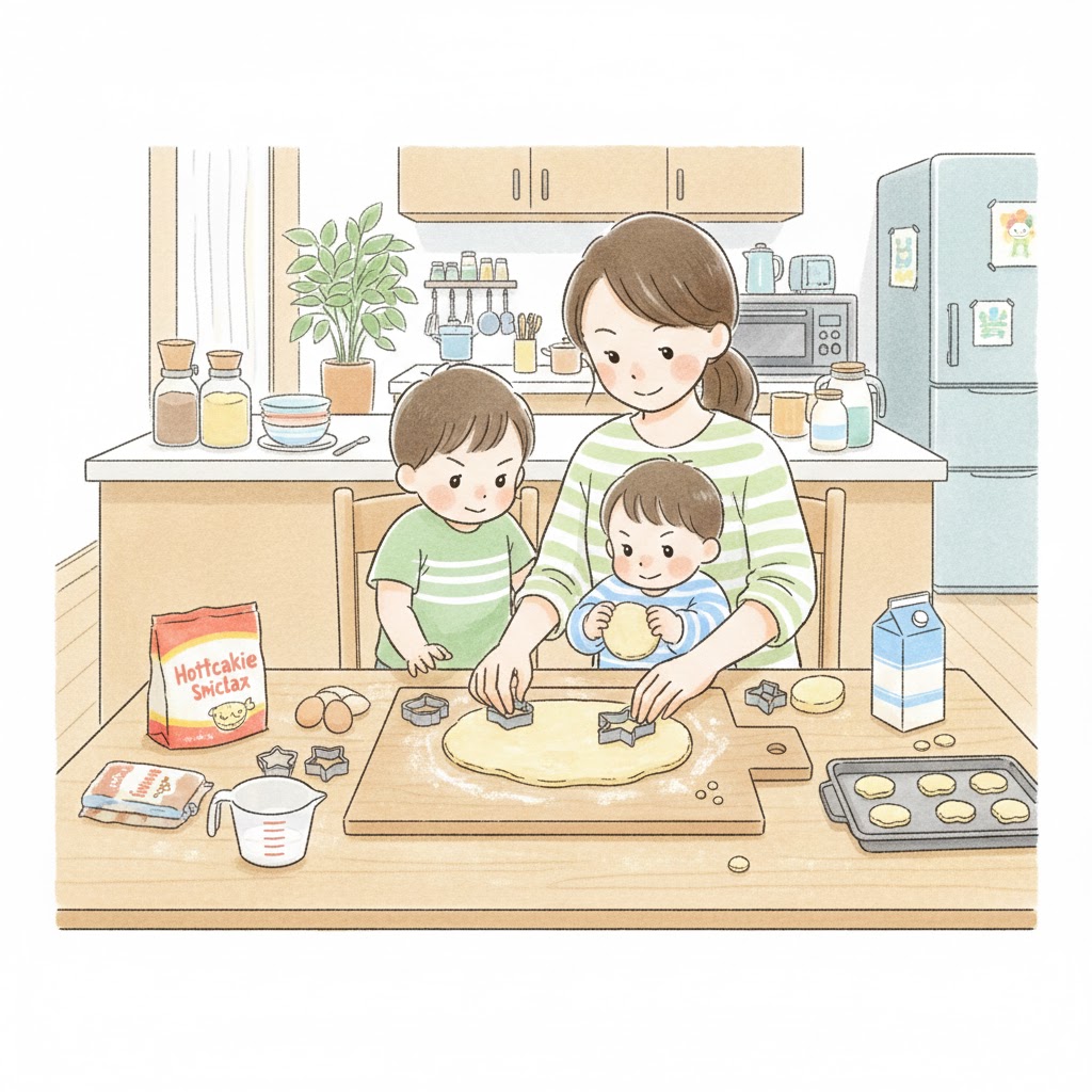 • 「ホットケーキミックスでお菓子作る?それともお絵かきにする?」