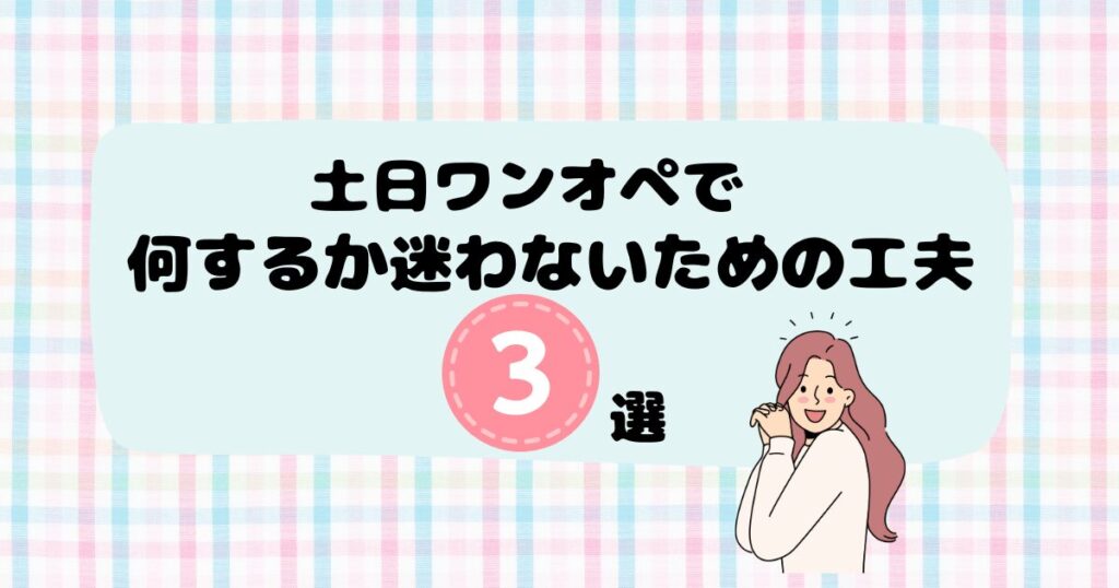 ここでは、土日ワンオペで何するか迷わないための工夫を、3つお伝えします。