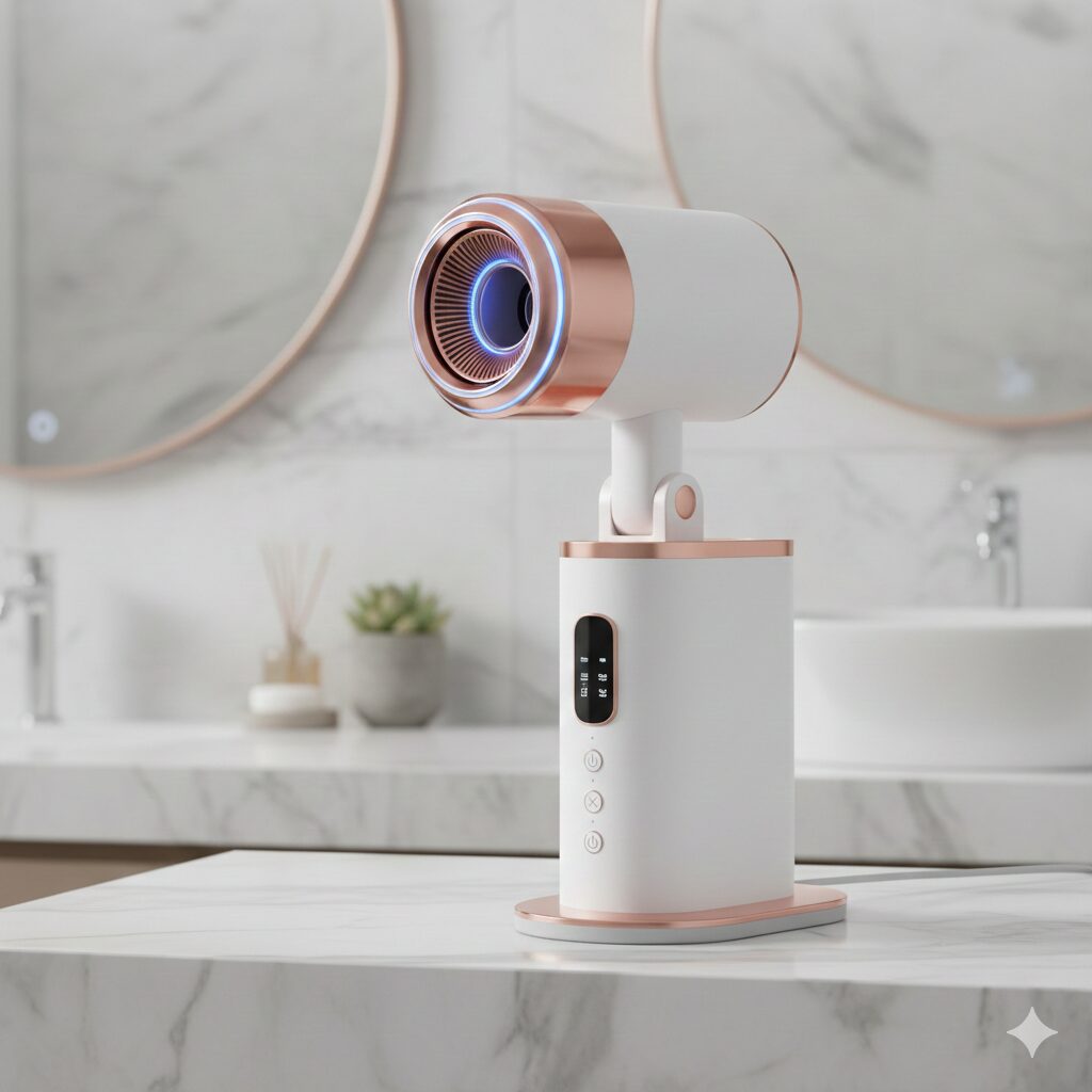 ハンズフリータイプのドライヤーを購入したら、洗面所に置いておくだけで両手を使うわずに髪が乾くから、その間に子どものスキンケアや着替えができちゃう。