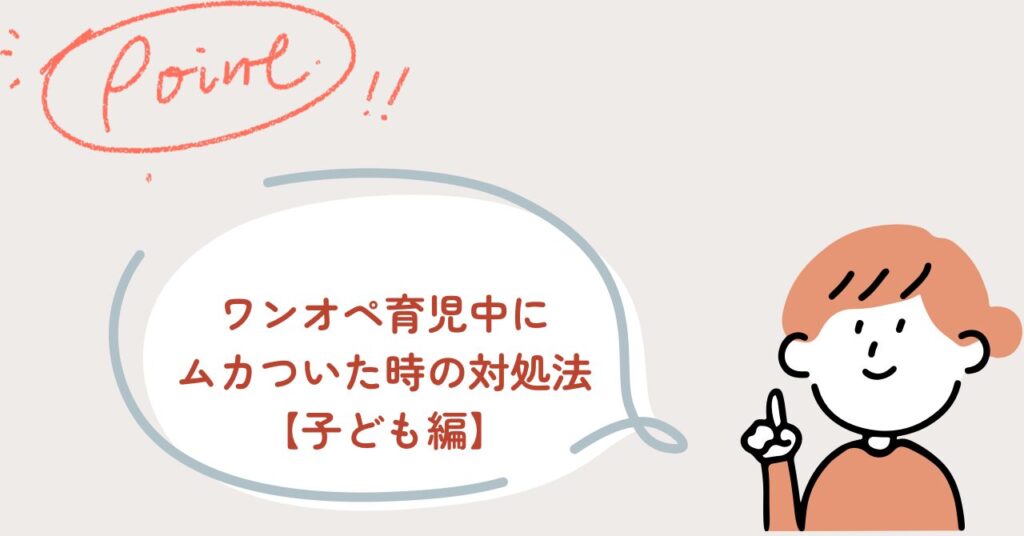 次に、ワンオペ育児中に子どもにムカついた時の対処法も解説しています。