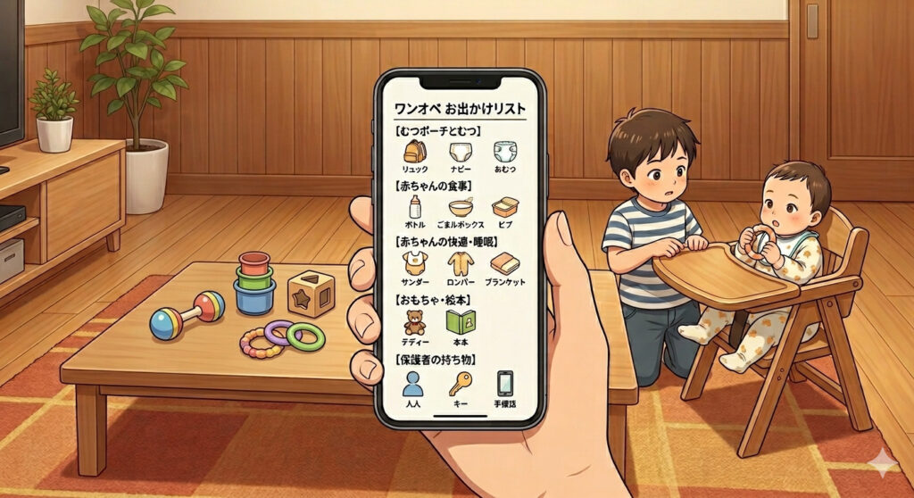 ワンオペで子ども2人とお出かけのときは、持ち物のチェックリストを作りましょう
