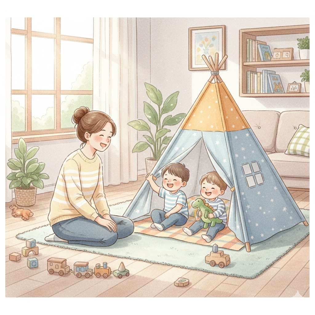 ワンタッチで広げられるキッズテントや室内テントがおすすめです。