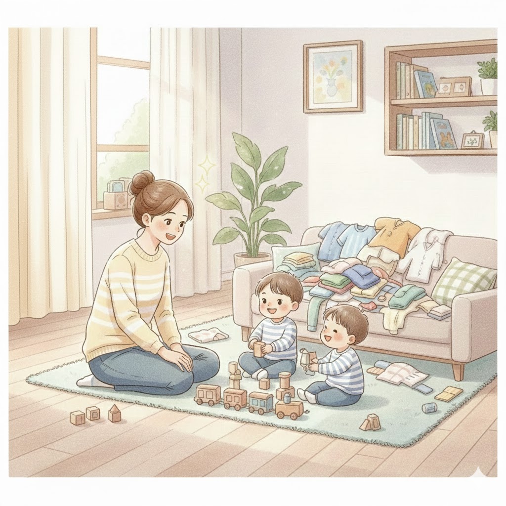 私は子ども2人のお世話をしながら、家事もしなきゃで全然休めない。