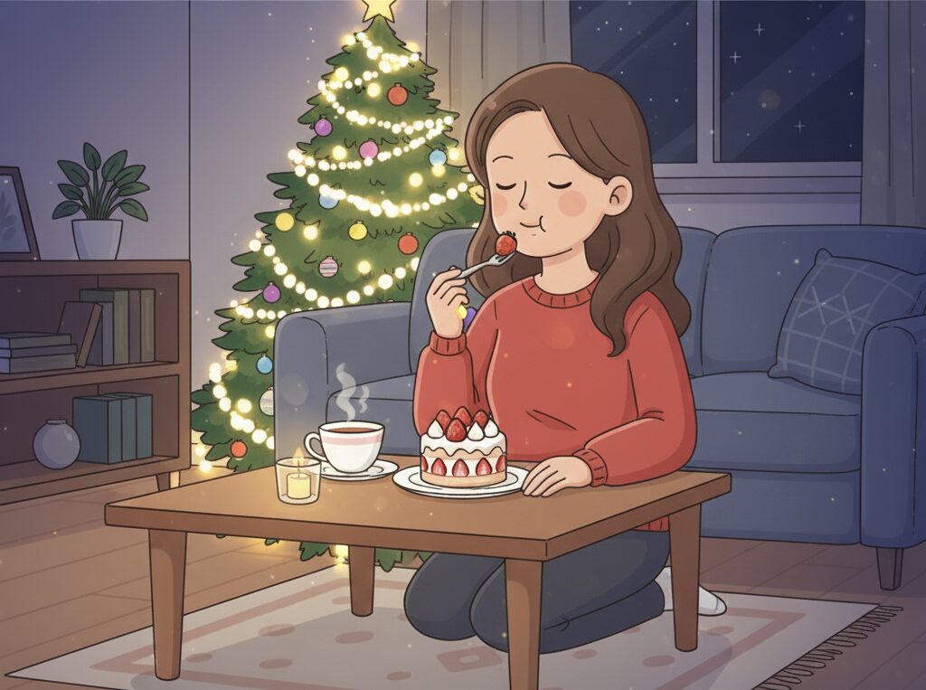 - 子どもが寝たあとは自分用の特別なクリスマスケーキで幸せを嚙みしめる