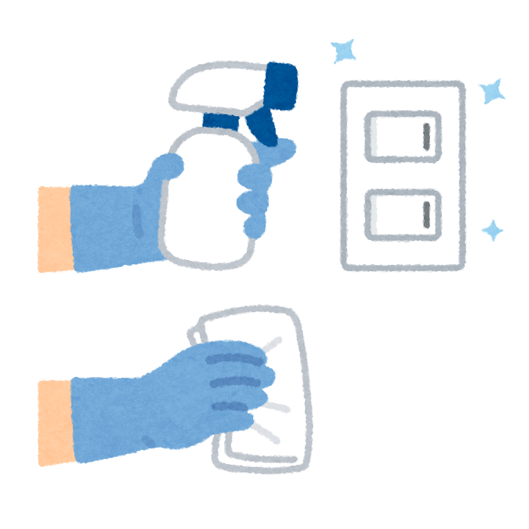 よく触れる場所だけでいいから優先的に消毒するよう心がけてみて。