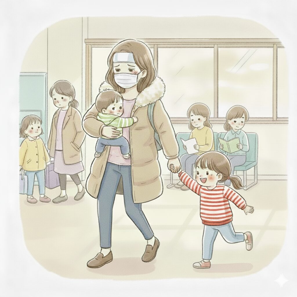 自分が体調不良の時に、子どもを連れて病院に行くって、もう修行ですよね。