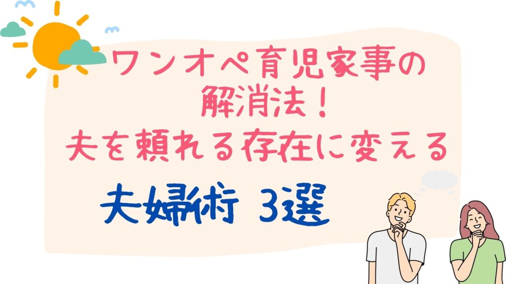 次に、ワンオペ育児家事の解消法!夫を頼れる存在に変える夫婦術3選。