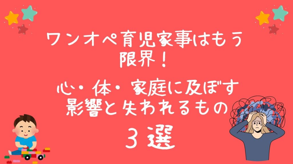 まずはワンオペ育児家事はもう限界!心・体・家庭に及ぼす影響と失われるもの3選をご紹介。