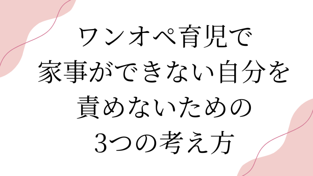 ワンオペ育児で家事ができない自分を責めないための3つの考え方について紹介しました。