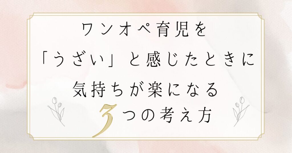 - ワンオペ育児を「うざい」と感じたときに気持ちが楽になる3つの考え方