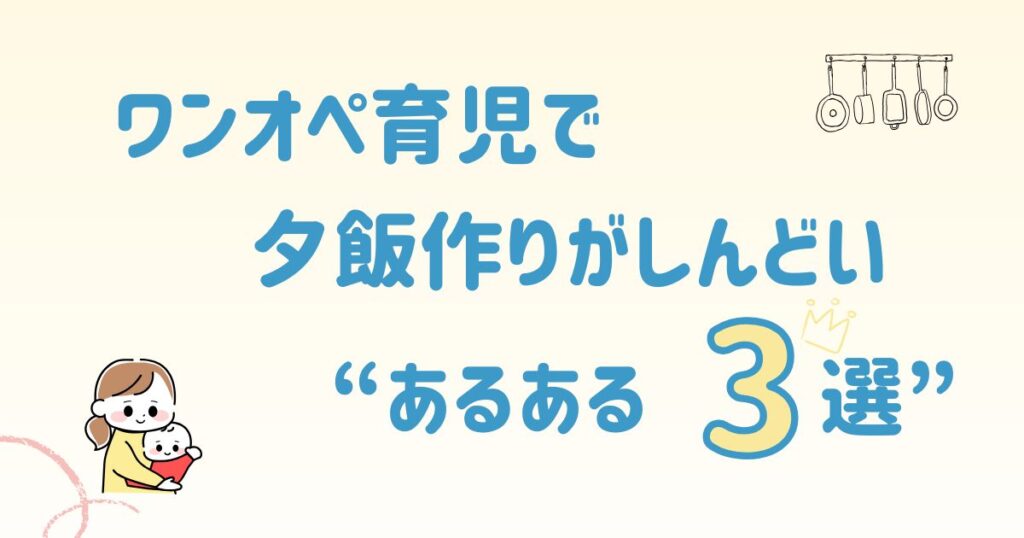 最初は、ワンオペ育児で夕飯作るのがしんどいなっていう、あるある3選をご紹介。