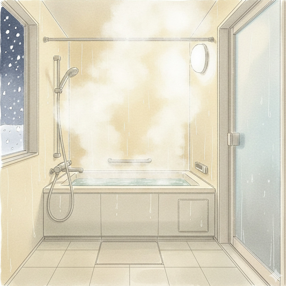 - 浴室は早めにお湯を張って温かい蒸気を充満させる