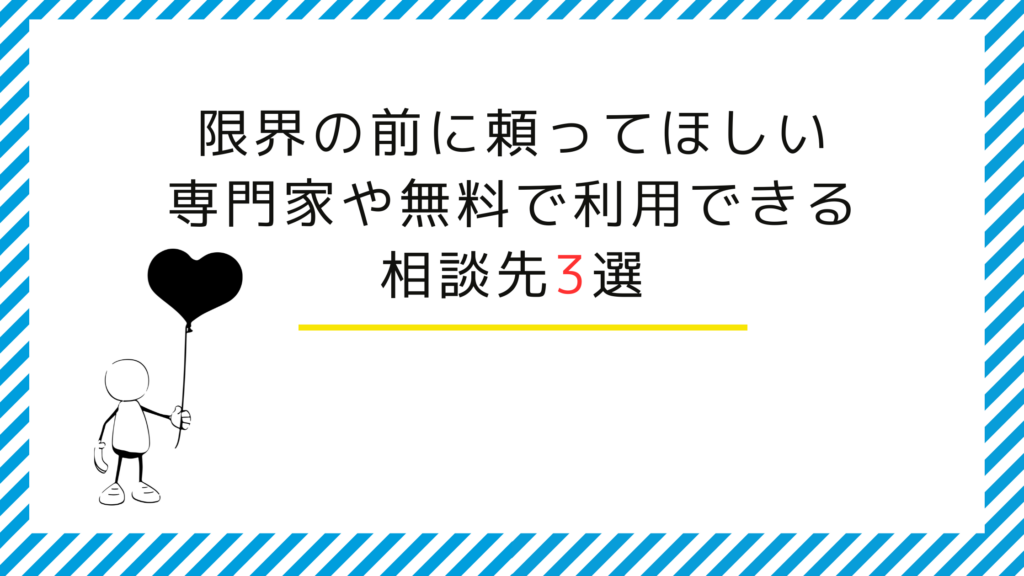 次に、限界の前に頼ってほしい専門家や無料で利用できる相談先を3つ紹介しました。