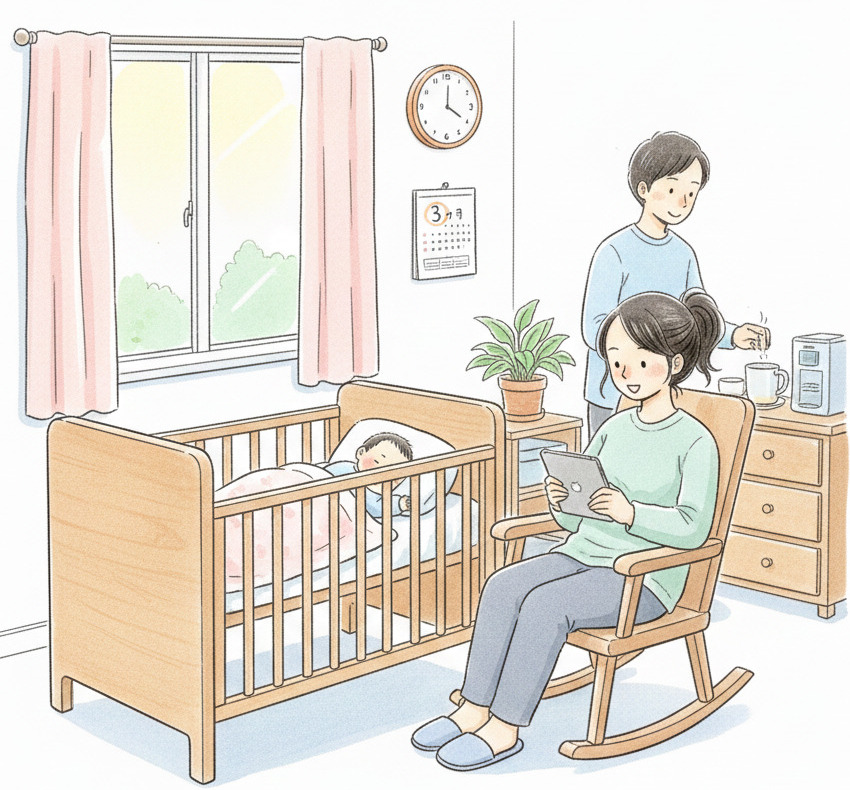 赤ちゃんのリズムに合わせて、休めるときに休んでいこうね。