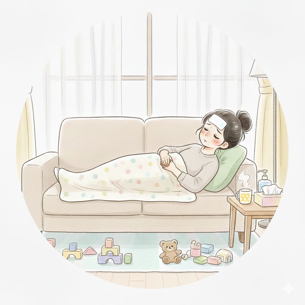 熱や頭痛で動けなくても、子どものお世話は待ってくれず、家事もどんどん溜まっていく。