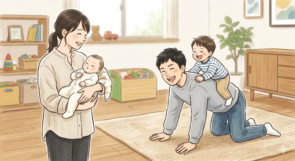 - 休日はパパに下の子をお願いして、ママが上の子と過ごす