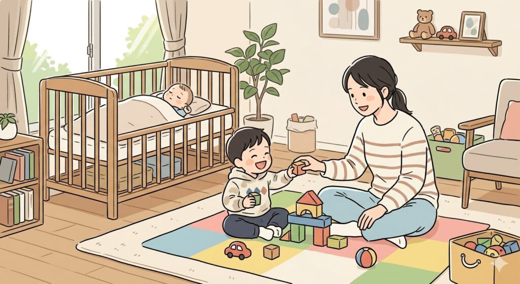 - 産後は、下の子のお世話をしながら上の子とも遊ぶ時間を作った