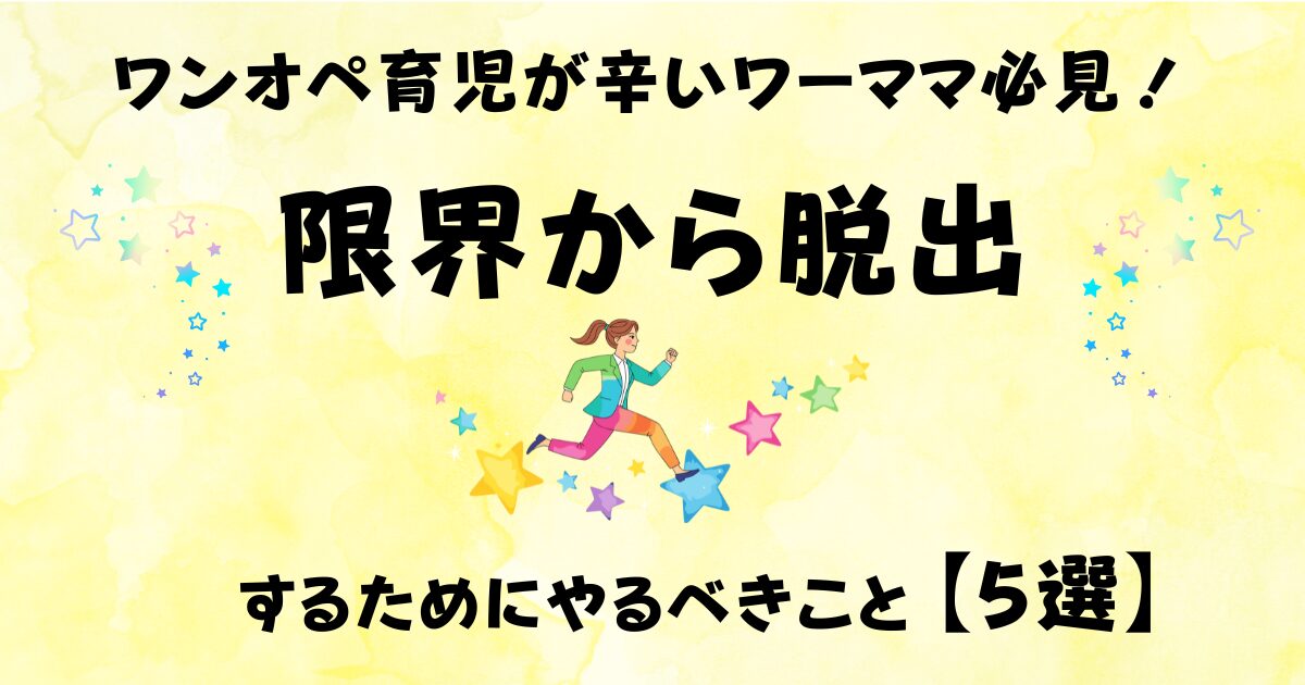 そして、ワーママがワンオペ育児の限界から脱出するためにやるべきことを5つ紹介しました。