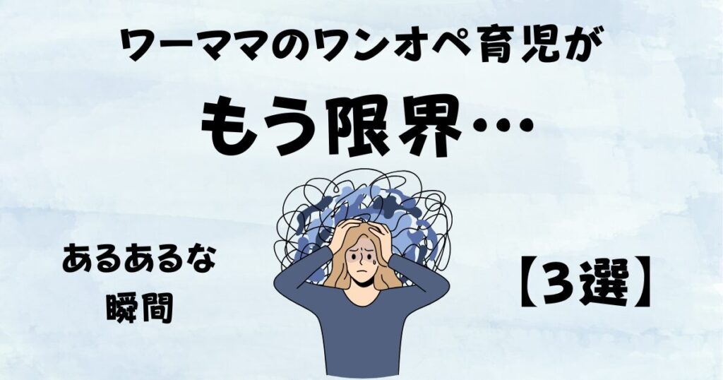 最初に、ワーママのワンオペ育児がもう限界だと感じるあるあるな瞬間を3つご紹介しました。